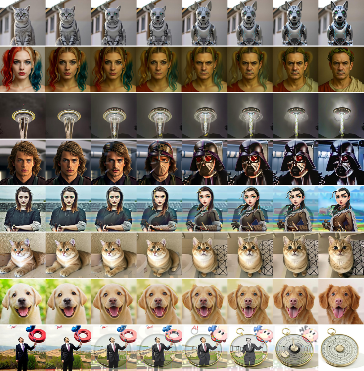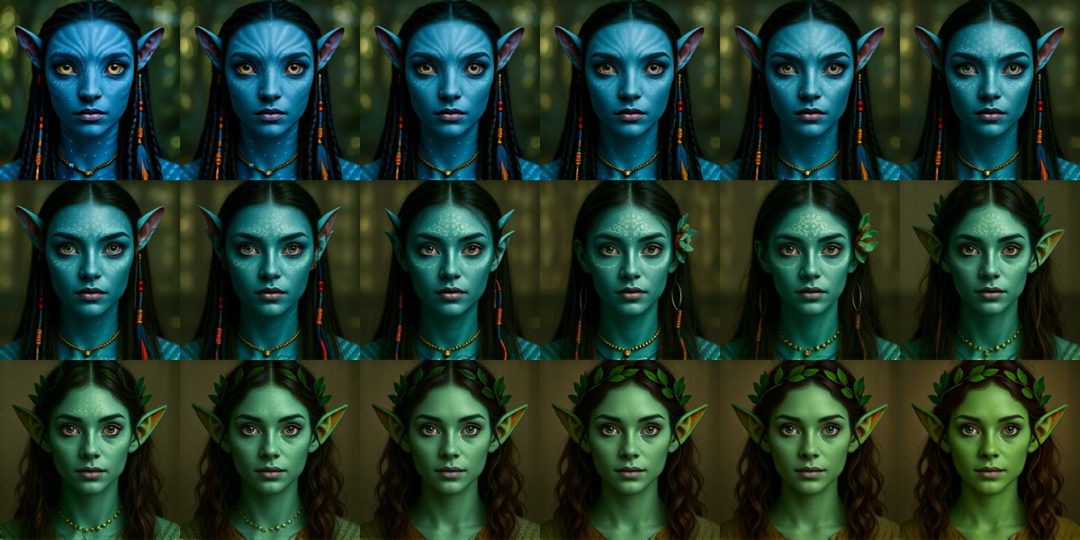 Smooth, identity-preserving transitions across poses and expressions.