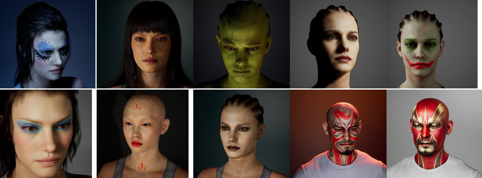 Multi-view renders (Peking Opera makeup)