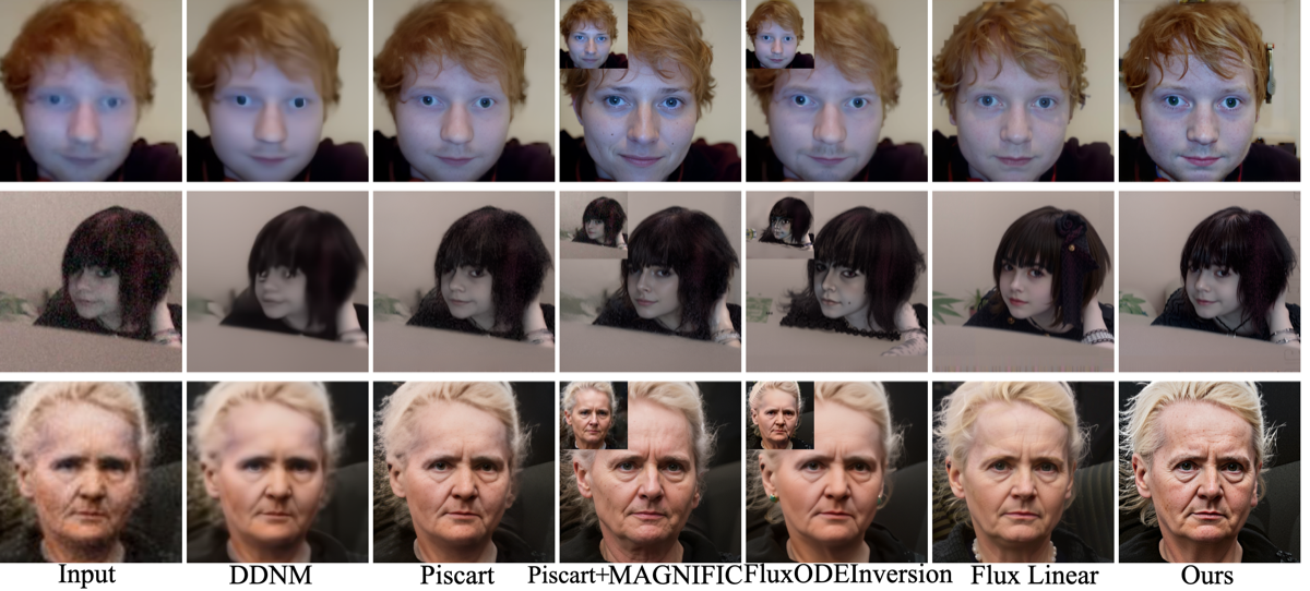 | Method | Denoise PSNR↑ | Deblur LPIPS↓ | 4× SR LPIPS↓ | Time |