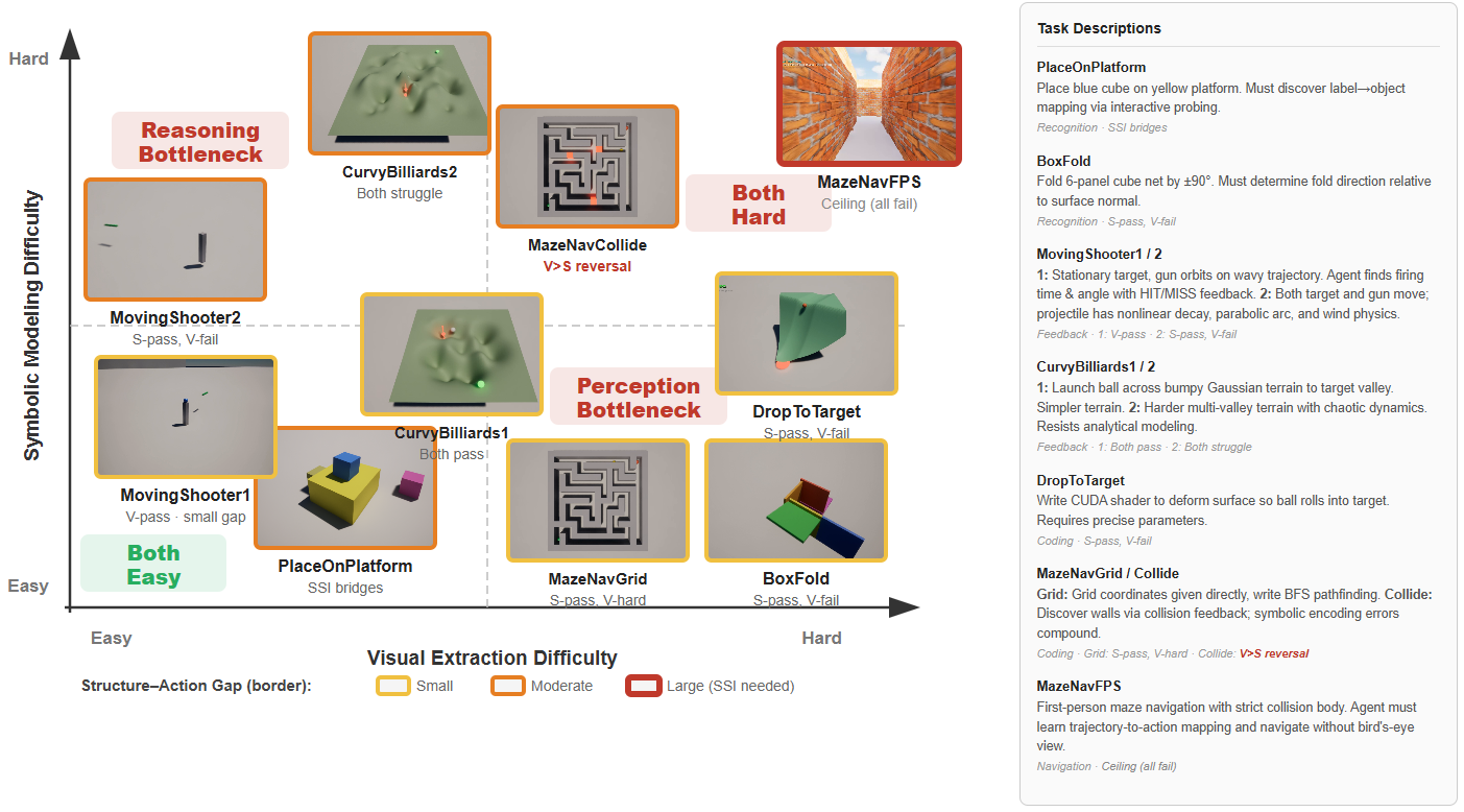Takeaway: The bottleneck is not reasoning — models can solve tasks when given structure. The bottleneck is extracting that structure from visual input.